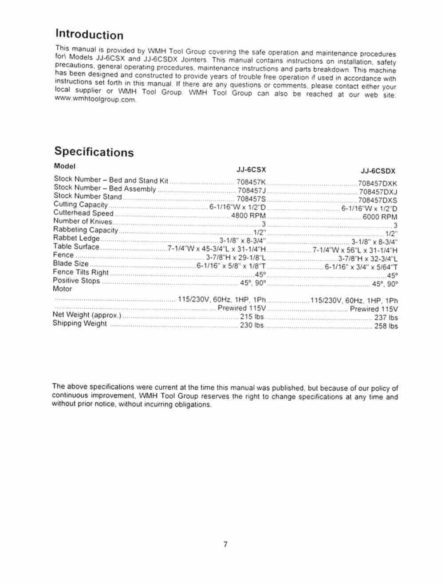 Jet 6 Jointer Manual