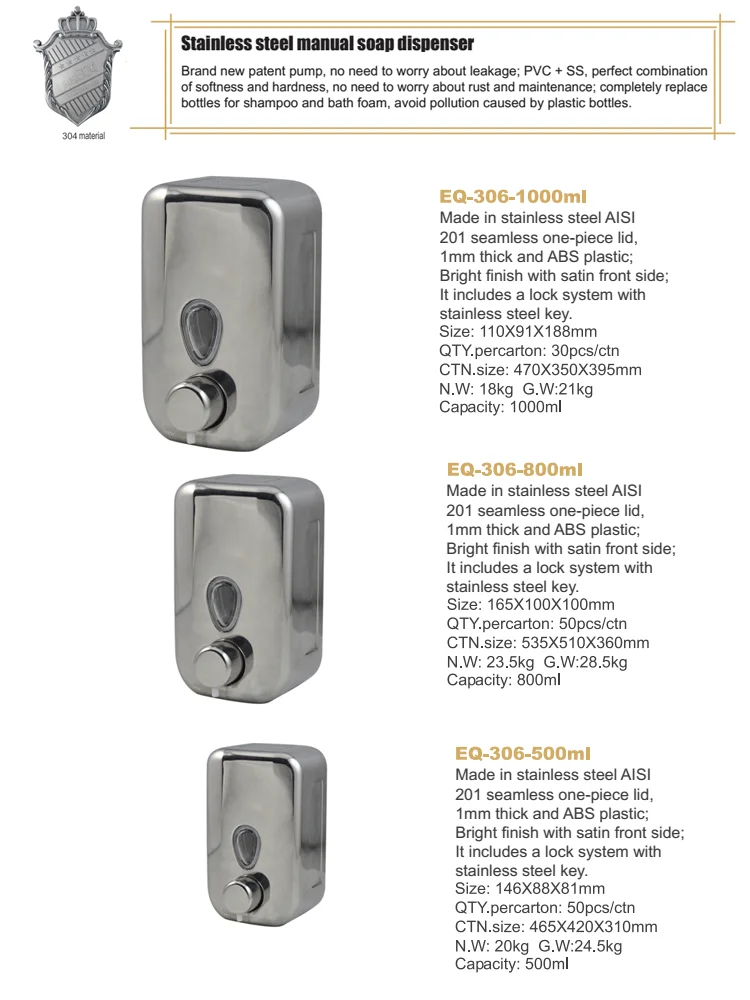 304 Stainless Steel 1000ml Soap Dispenser Kitchen Sink With Big