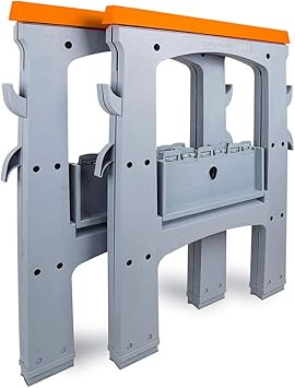 Its sturdy takes less than a minute to put up less to take down and with its compact design stores away nicely. A pair of sawhorses come in mighty handy when you cut sheet goods or need to set up a temporary work area. Knock down sawhorses a set of sawhorses always comes in handy until you put them away. Adjustable strongsturdy dont require a lot of space to store ie.