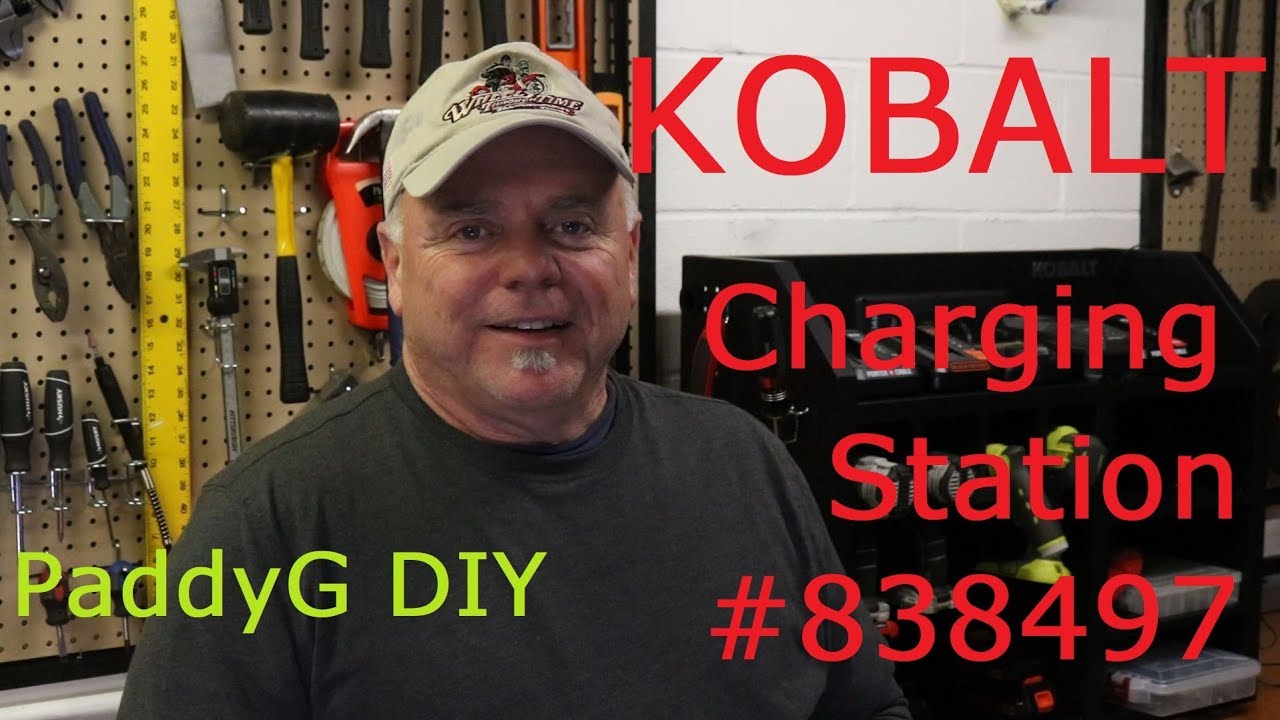 Kobalt cordless tool station. There was an also a hand written thank you note and to top it all of it was proudly made it in kentucky. It was hung on cinder block wall using a french cleat. Kobalt charging station with french cleat mount with tools. Created a modified layout of this cordless tool station for my ryobi one set of tools.