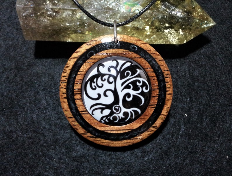 Yin Yang Tree Of Life Pendant In Kwila Wood With Black Resin Etsy