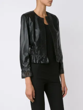Carolina Herrera Laser Cut Leather Jacket Farfetch