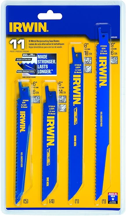 Irwin Reciprocating Saw Blades Set 11 Piece 4935496 Sawzall