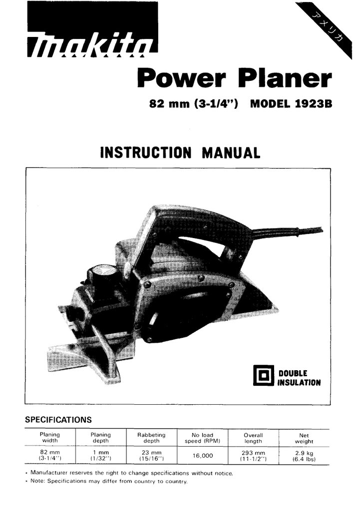 Download Free Pdf For Makita N1900b Power Planer Other Manual