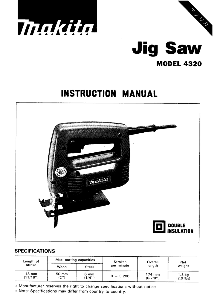 Makita Double Insulation 4320 Instruction Manual Manualzz