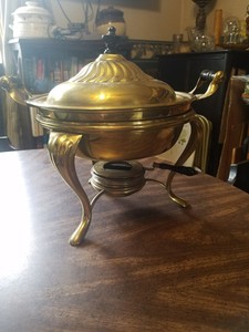Antique Manning Bowman Co Brass Chafing Dish Complete Set Up