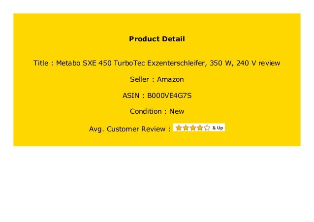 Metabo Sxe 450 Turbotec Exzenterschleifer 350 W 240 V Review