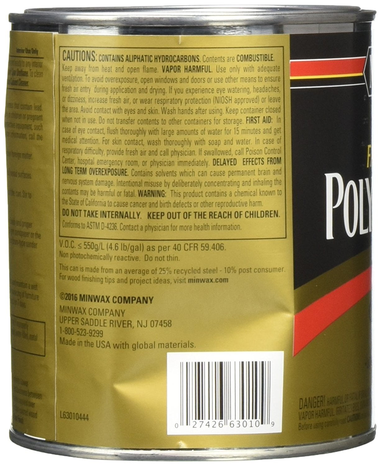63010444 Fast Drying Polyurethane Clear Finish Quart Satin