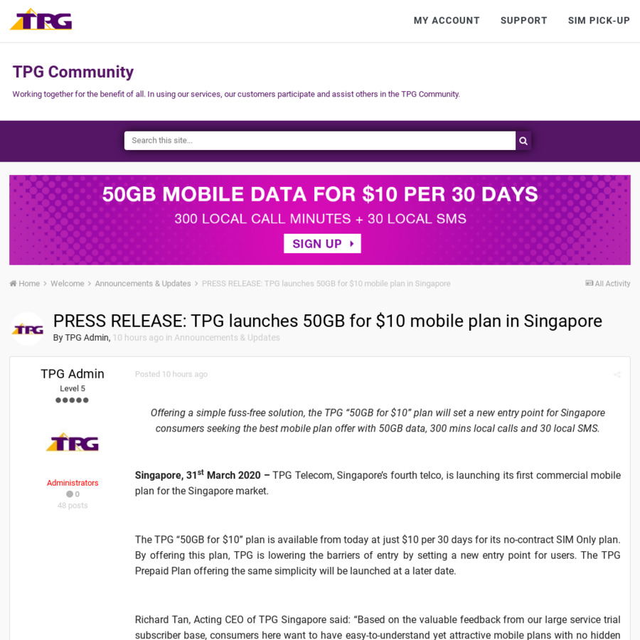 Tpg Mobile 50gb Plan For 10 30 Days Cheapcheaplah
