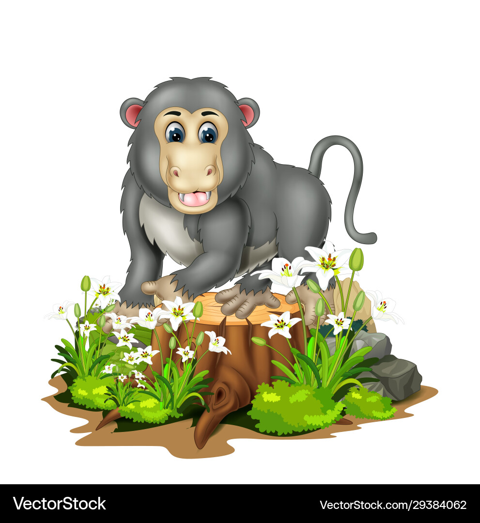 Funny Grey Monkey With Wood Tree White Flower Vector Image