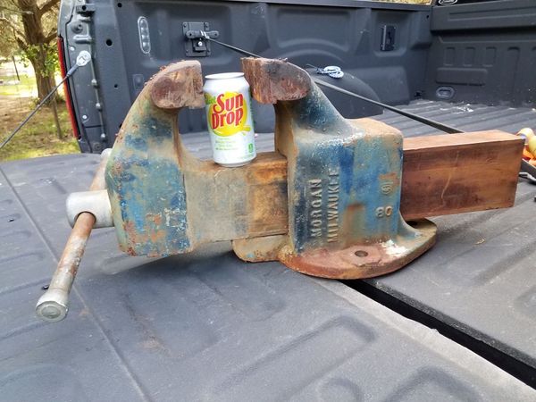 This listing is for a vintage morgan chicago 50 bench vise 5 jaws opens up to 8 12 wide 71 lbs. You want sufficient wood behind this rear jaw to support the vise and any wood being held in the vise. You may need to glue a block of wood behind the apron to get sufficient holding strength. It has very smooth action at the handle.