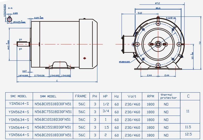 Three Phase Motor Tefc 56c With Feet Nema Standard Motors