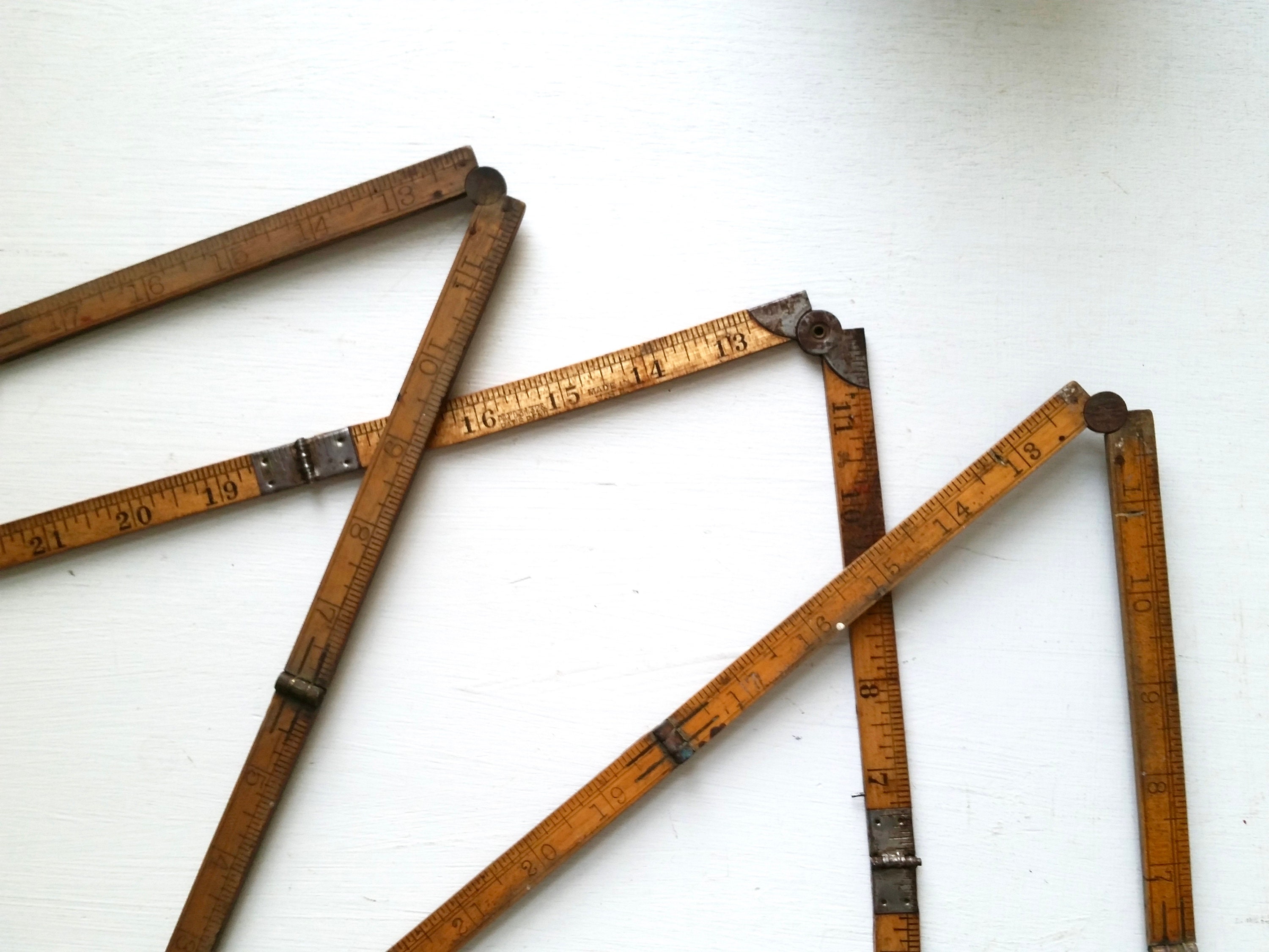 Sale Three Antique Fold Out Wood Rulers Vintage Hinged Wood Etsy