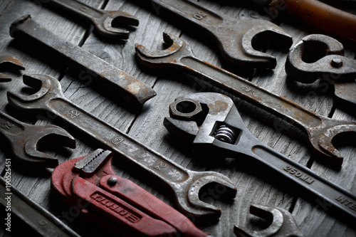 Tool Background Old Vintage Metal Tools Collection On Wooden