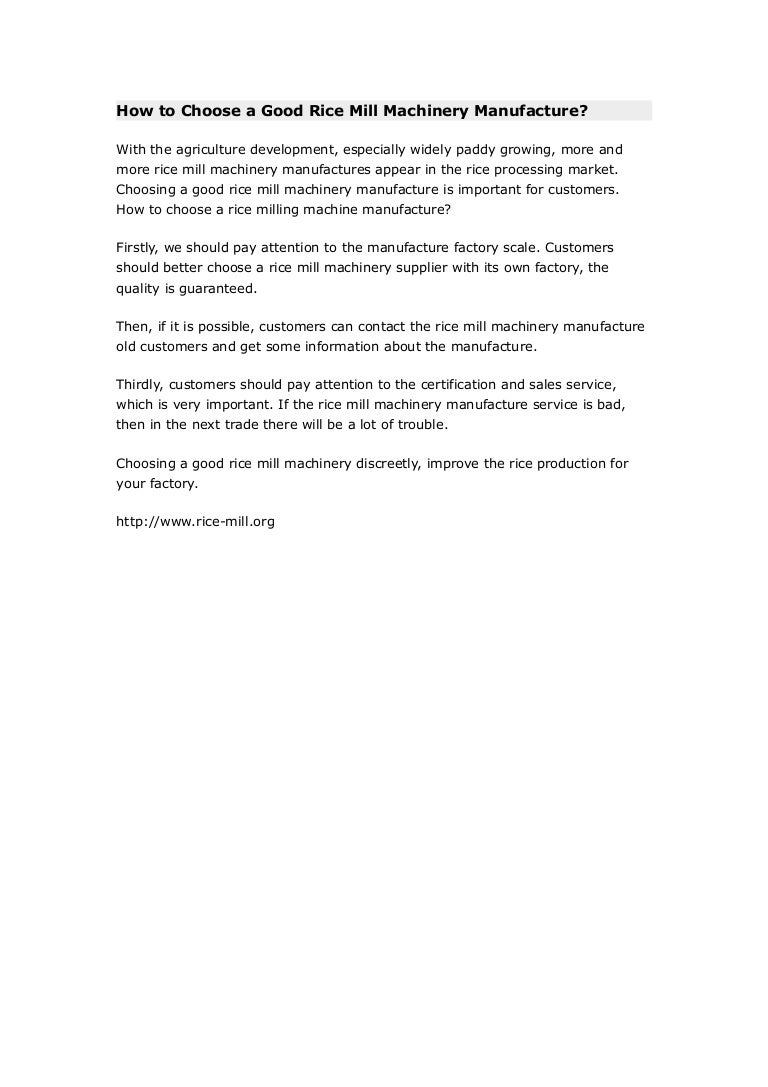 Choose Rice Mill Machinery Manufacture