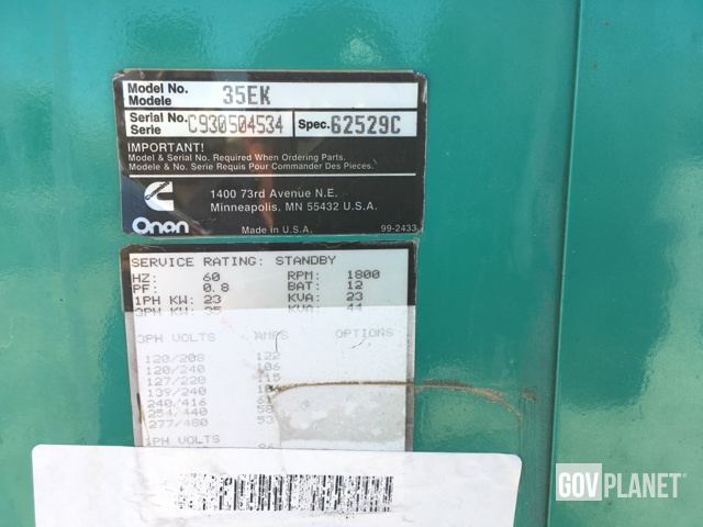 Surplus Onan Cummins 35ek 23kw Gen Set In Doyle California