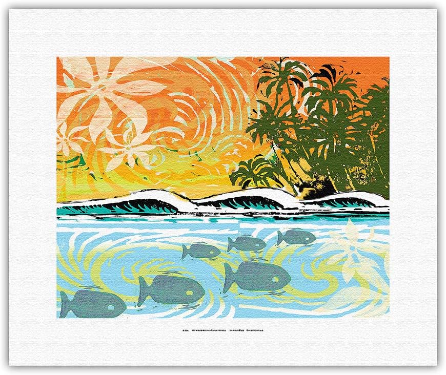 Amazon Com Pacifica Island Art Aloha Woodcut Hawaii Wave