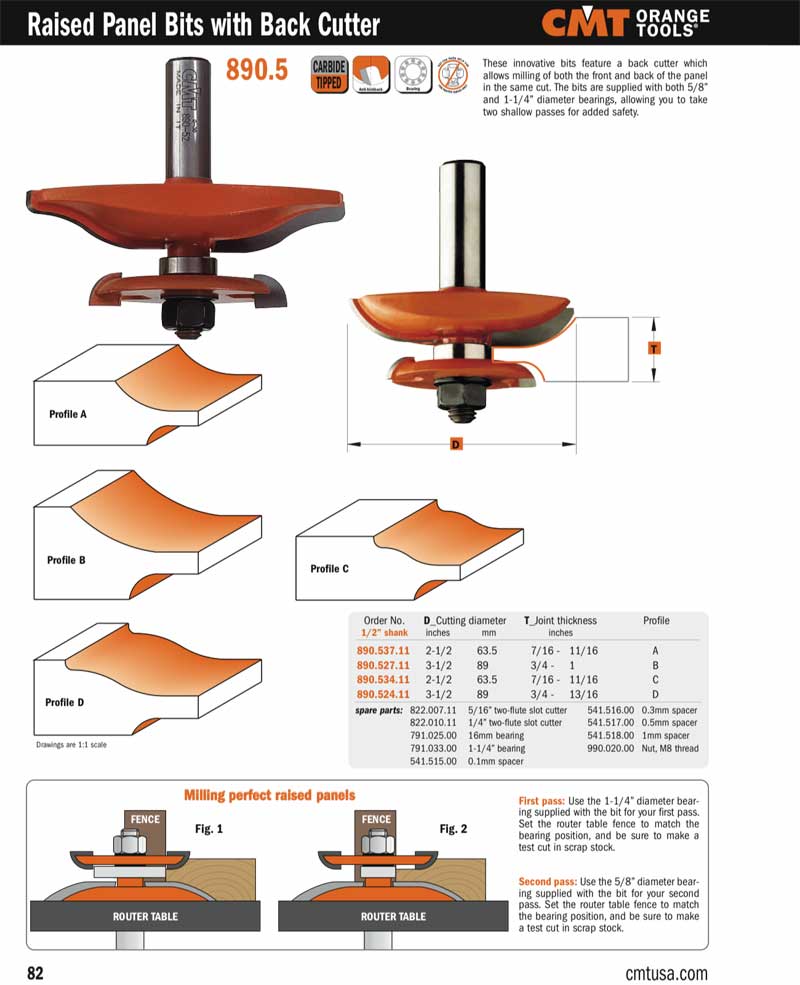 Cmt 890 524 11 Long Ogee Raised Panel Router Bit With Back Cutter