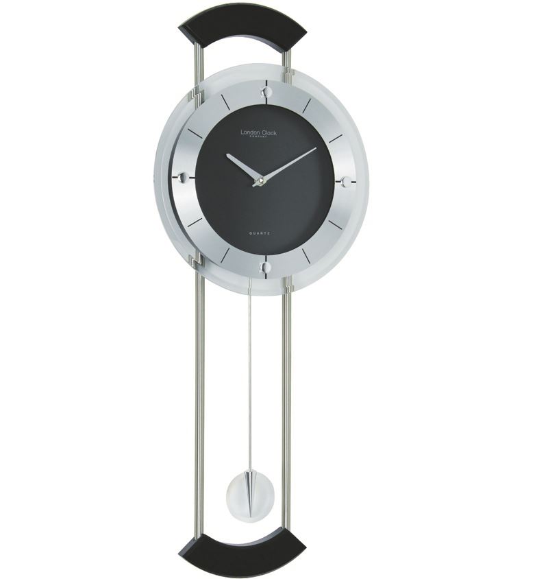 Black Silver Contemporary Pendulum Wall Clock 62cm 5776523957644
