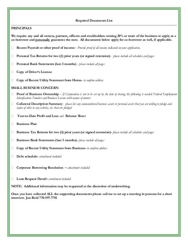 Required Loan Documents