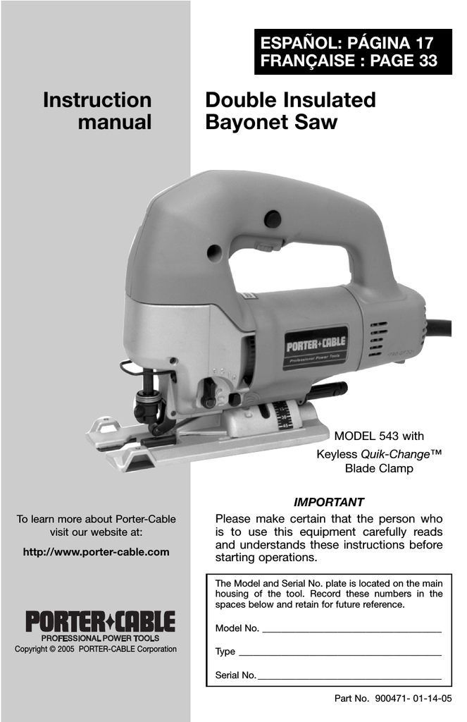 Porter Cable 447 Saw User Manual Manualzz