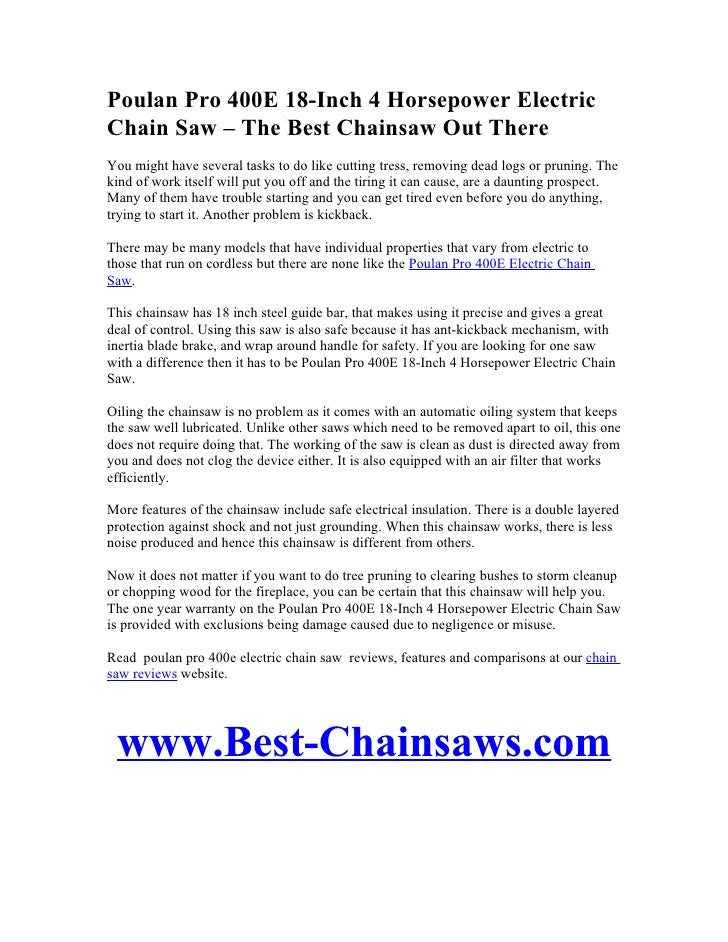 Poulan Pro 400e 18 Inch 4 Horsepower Electric Chain Saw The Best Ch