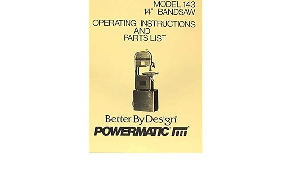 Powermatic 143 14 Inch Band Saw Operating Parts Manual Misc