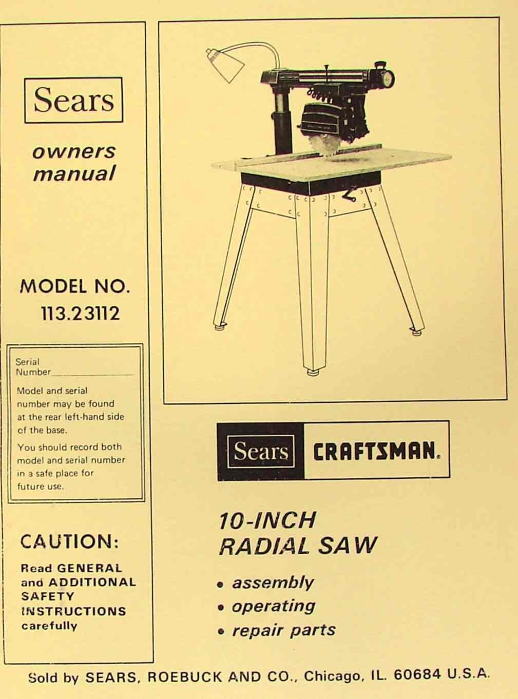 Craftsman Radial Arm Saw 315 22038 Saw Manual