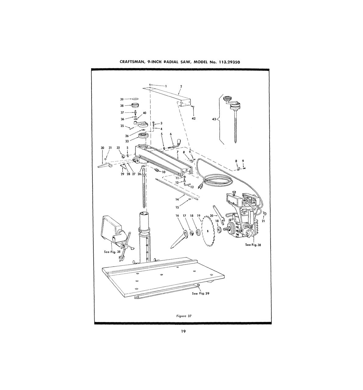 Sears Craftsman 113 29350 Radial Arm Saw Op And Parts List Manual