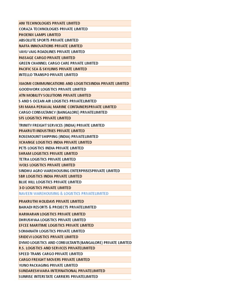 Karnataka Companies Data Base Hotel Cargo