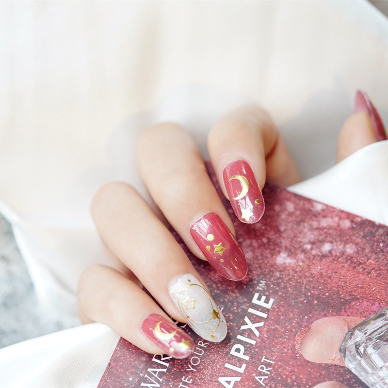 Yw187 Transparent Red Star Adhesive Nail Sticker Full Cover Nail