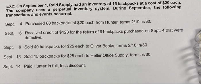 Solved Ex2 On September 1 Reid Supply Had An Inventory