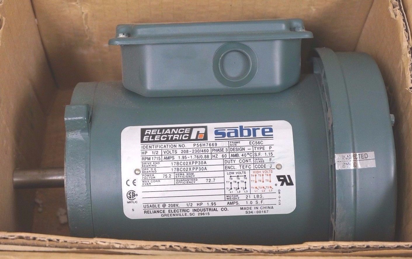 New Reliance Electric P56h7669 Motor 1 2hp 1800rpm Sb