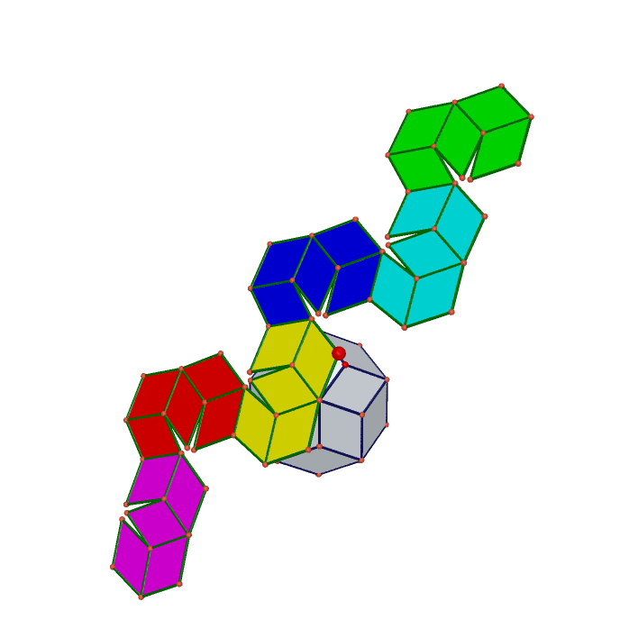 Rhombic triacontahedron net. The rhombic triacontahedron is also interesting in that its vertices include the arrangement of four platonic solids. Posts about rhombic triacontahedron written by robertlovespi. Where f is the golden ratio. And heres a compound of the rhombic triacontahedron in grey and its dual.