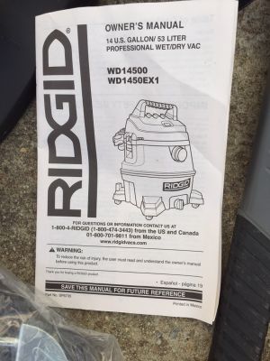 Ridgid Shop Vac Wd14500 Manual