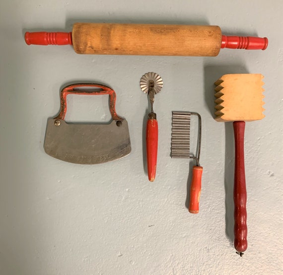 Vintage Red Handled Kitchen Utensils Kitchenware Rolling Etsy
