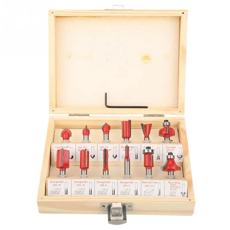12 Pcs Router Bit Set Shank Carbon Steel Woodworking Tool Cutter
