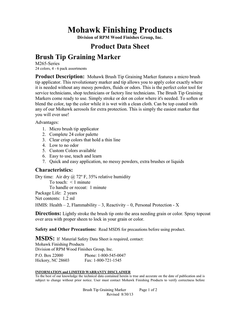 Mohawk Finishing Products Product Data Sheet Brush Tip Graining