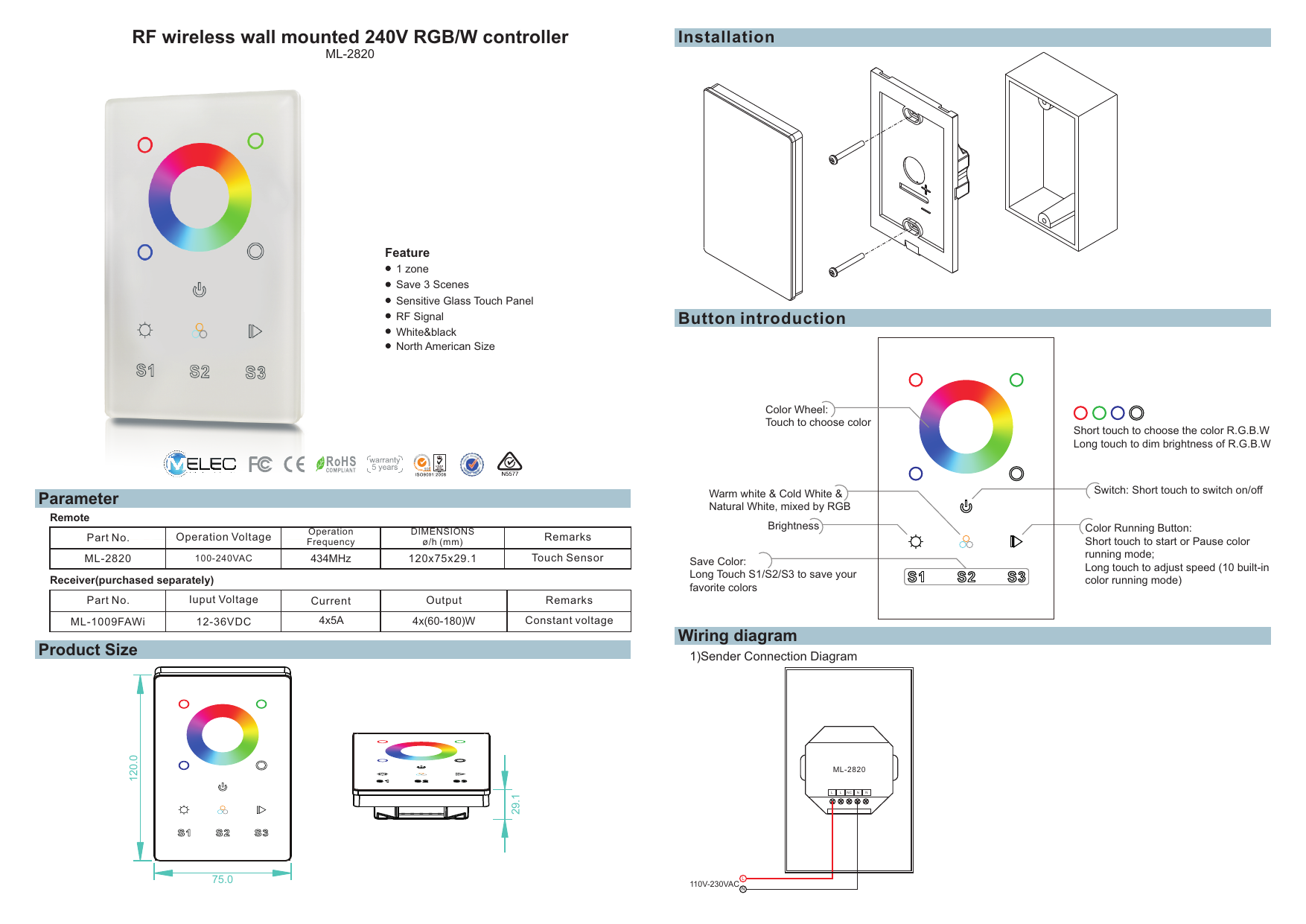 Rf Wireless Wall Mounted 240v Rgb W Controller M Elec Manualzz Com