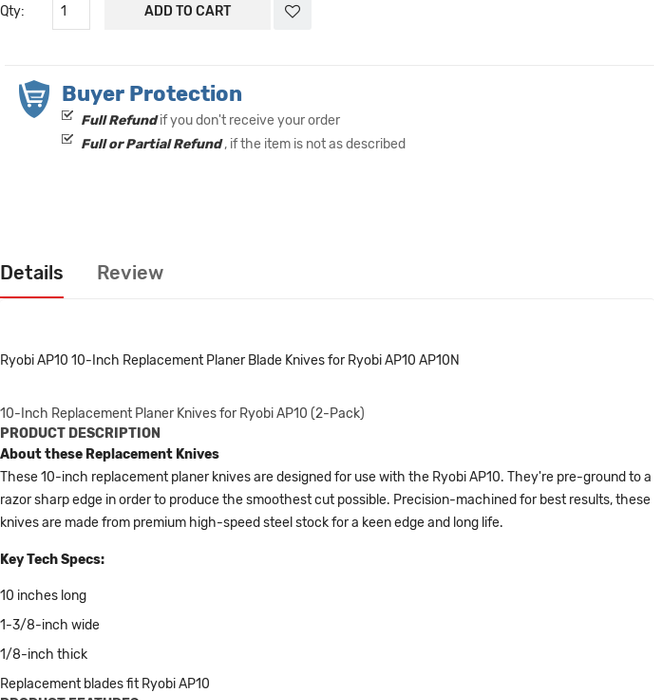 Ryobi Ap10 Tct Planer Blade