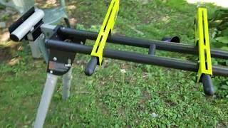 Ryobi quick stand. Backed by the ryobi 3 year manufacturers warranty the universal miter saw quickstand includes mounting hardware saw brackets material supports material stops and an operators manual. It is a universal miter saw stand and i made this video to show you the unboxing and assembly of the product. I would have liked to have bought the dewalt miter saw stand but at 219 for the stand that doesnt include the mounting brackets i could not justify it. So i got the ryobi instead.
