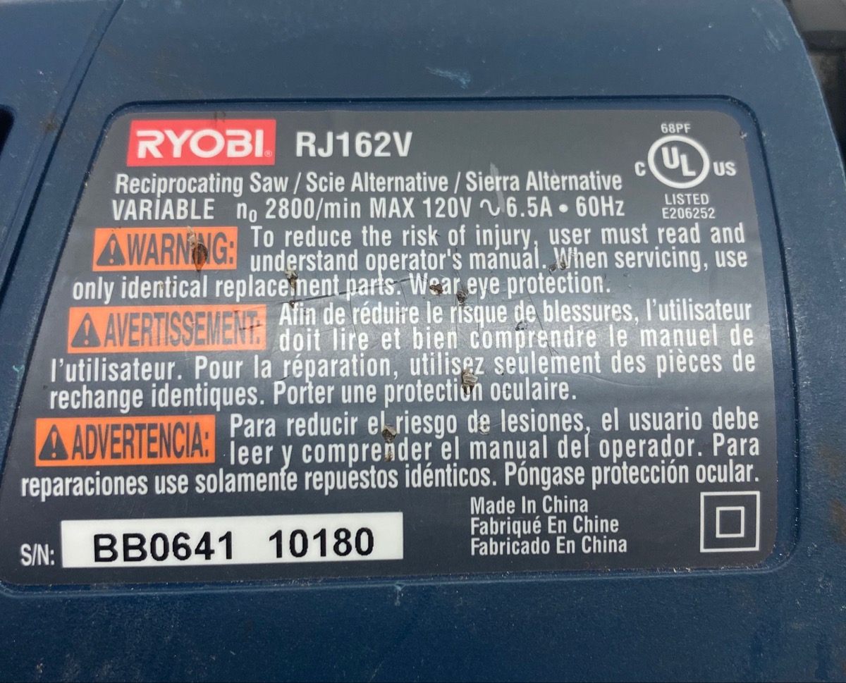 Sold Ryobi Rj162v Reciprocating Electric Saw In Lake Worth Letgo