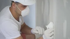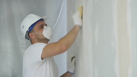 Man Hand Sanding Plaster Wall Close Up Stock Footage Video Of