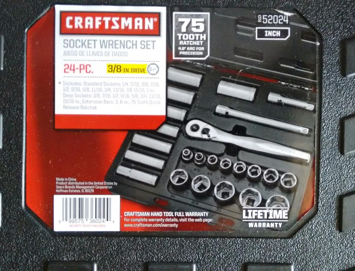 Craftsman 24 Pc 3 8 Drive Sae Standard Socket Wrench Set With 75t