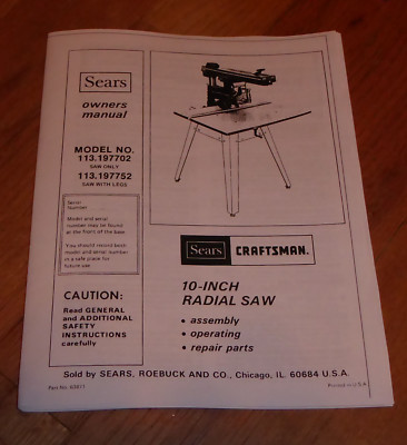 Sears Craftsman Radial Arm Saw Manual And 50 Similar Items