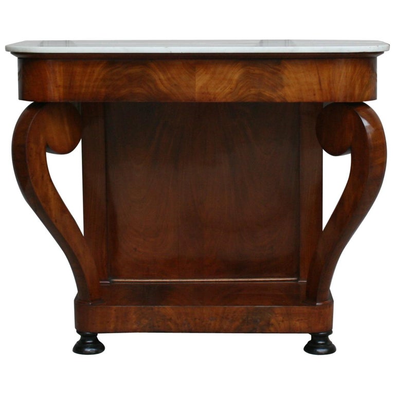 Antique Louis Philippe Mahogany And White Marble Console Table