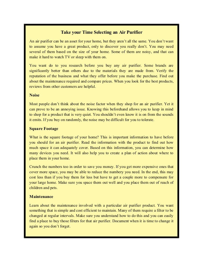 Take Your Time Selecting An Air Purifier