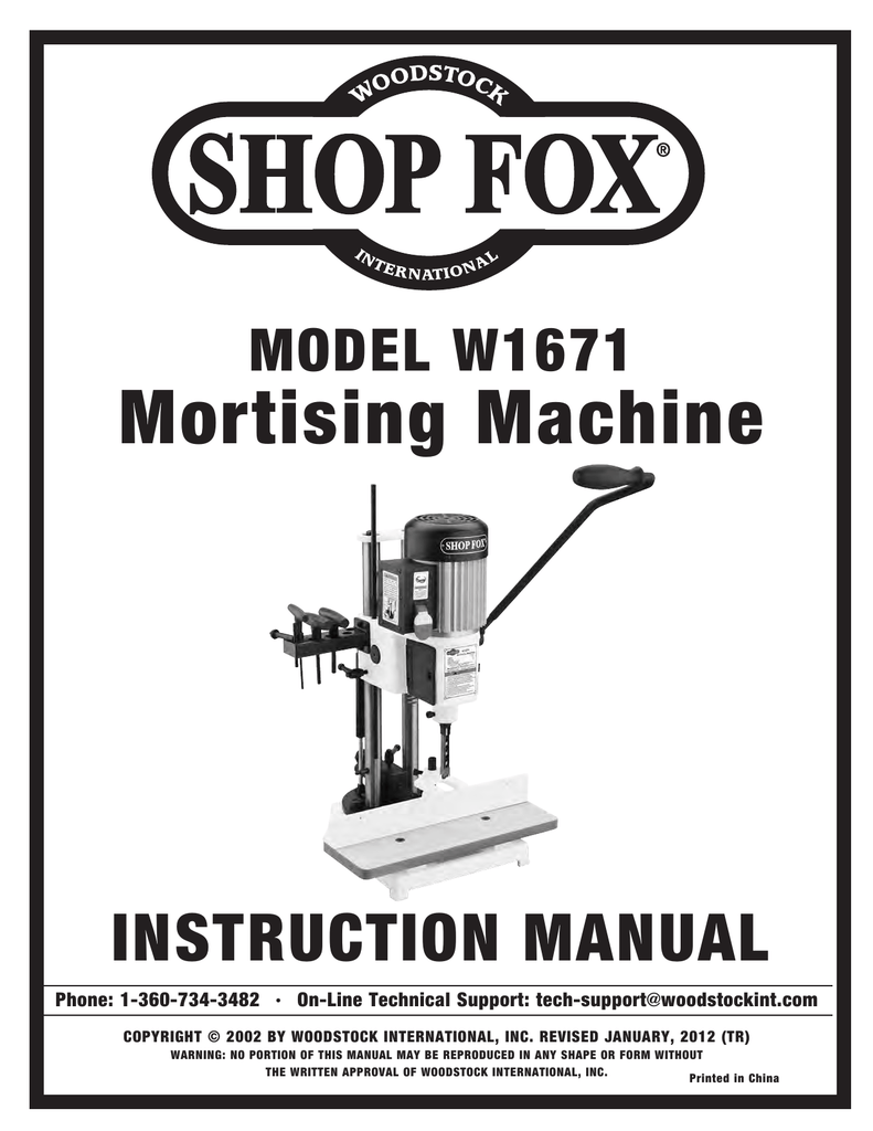 Shop Fox W1680 Instruction Manual Pdf Download