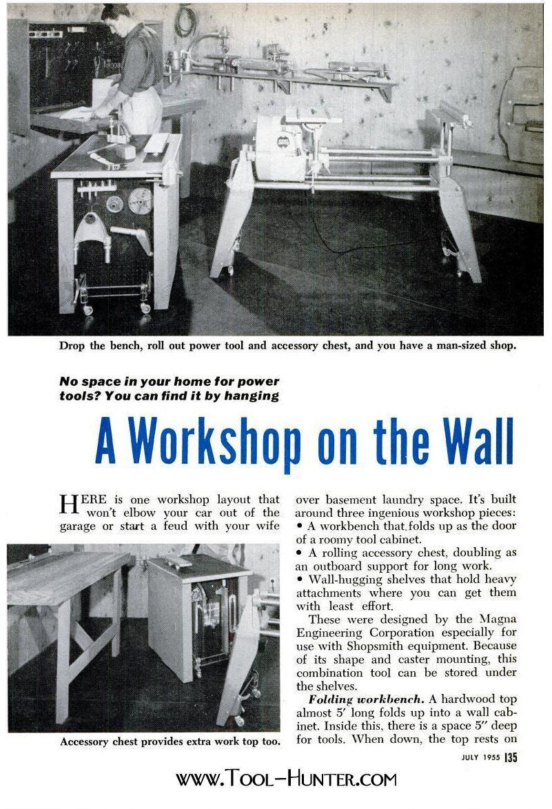 1955 A Workshop On The Wall Article For Storing A Shopsmith Mark