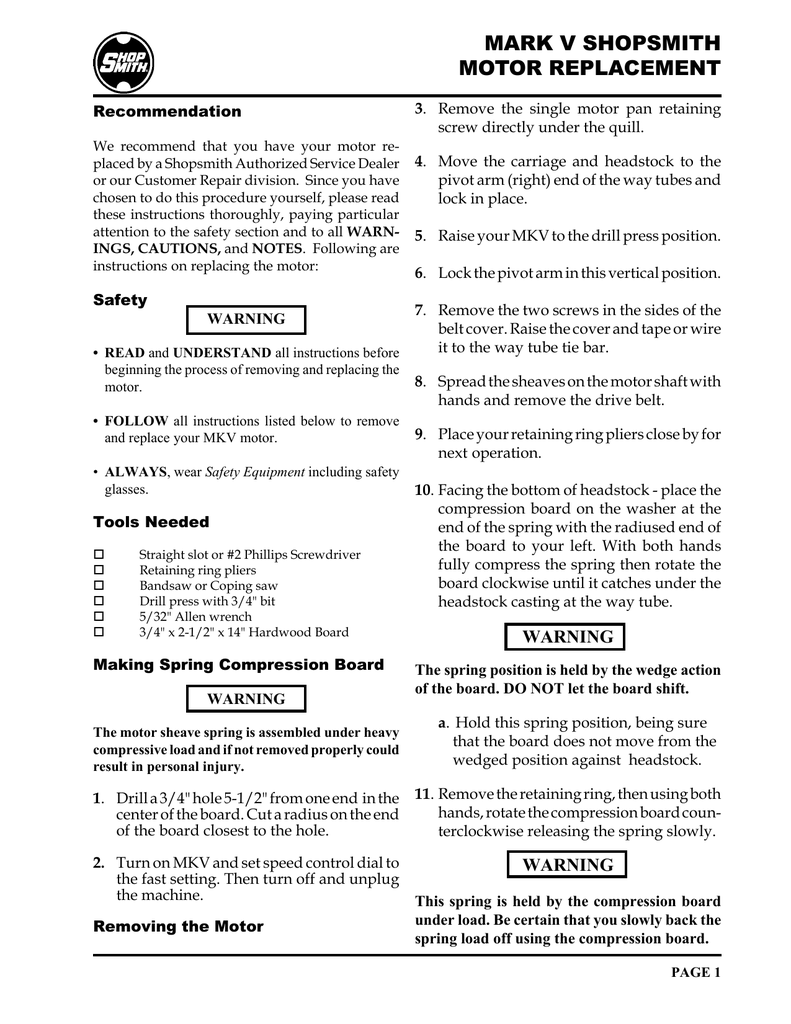 Mark V Motor Replacement Manualzz